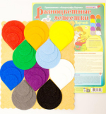 - 3 набора по 10 разноцветных лепестков из ковролина, радужные цвета + белый, серый и чёрный, отличающиеся по величине (большие, маленькие, средние).