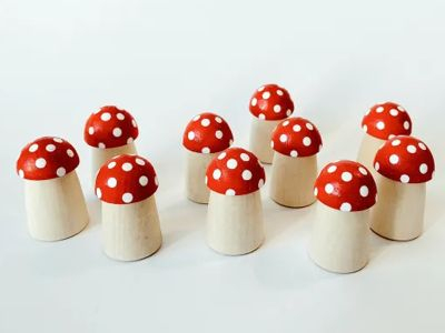 В комплект входят 10 ярких мухоморчиков, выполненных из дерева и окрашенных безопасными красками. С помощью подобных игрушек можно легко научить малыша считать. Возьмите грибок, поставьте перед малышом: «Один грибок. А вот еще один. А вместе? Два!»