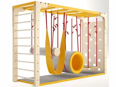 Комплекс включает в себя тренажеры для сенсорного развития. Спортивное оборудование позволяет усилить чувствительность тела, снять напряжение, повысить концентрацию. Съемные элементы при необходимости меняются местами, выстраиваются в полосу препятствий. Монтаж не затрагивает стены помещения. На элементах с подвесами можно стоять, сидеть, лежать.