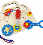 Пусть он назовет каждый из них, спомощью отвертки попробует прокрутить шестерёнки, а разводным ключомшестиугольники, проговорит цвет.