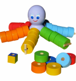 У этого игрушечного осьминога всего шесть ног и каждая нога состоит из 6 шайб определенного цвета. Ваш карапуз будет с удовольствием нанизывать яркие шайбы, изучая при этом названия цветов, развивая мелкую моторику, внимание и мышление.
