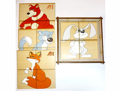 Комплектация: элементы пазла - 16 шт. (4 картинки по 4 элемента)