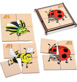 ДИ Сложи картинку Мини - Насекомые / 4разрез.картинки 12*12см, дерево, ДИ215