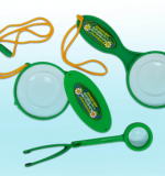 2) лупа диаметром 8 см с ручкой длиной 11 см со шнурком на конце ручки для удобного использования;