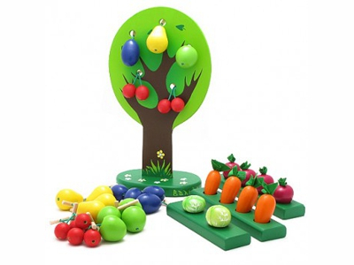 Яркие красивые фигурки из дерева сразу привлекут внимание ребенка. Симпатичная морковка с зеленым хвостиком из гладкого шелка, аппетитная зрелая слива, которую можно повесить на дерево при помощи деревянной палочки на резинке, или капуста, которая так похожа на настоящую, что хочется отломить хрустящий листочек. Такие замечательные овощи и фрукты очень удобно и приятно держать в руках, а играть с ними одно удовольствие.