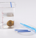 Набор включает: мерный стакан, 3 пластиковых стержня, прозрачную трубку и пипетку.