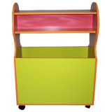 Описание: Основной цвет бук или кремовый. Фасады цветные по желанию заказчика. Две вертикальные фигурные стойки, внизу соединены между собой панелями, образующими короб. Вверху соединены вертикальной и двумя горизонтальными планками, образующими полку, разделенную пополам. На левой стойке снаружи четыре крючка.