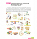 Программа предполагает создание развивающей предметно-пространственной среды, которая включает в себя разнообразные дидактические материалы и оборудование. На страницах программы представлены фото различных игровых и учебных наборов: счетные палочки, весы, кубики, карточки, конструкторы, модели и другие средства, которые помогают решать задачи по формированию математических, логических и исследовательских навыков.