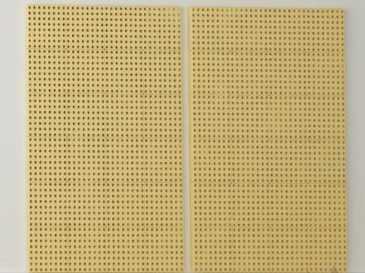Представлена стационарным основанием из березовой фанеры, на которое крепятся пластиковые панели с круглыми отверстиями для возможности фиксации образовательных комплектов. Количество панелей - 24шт. Представлена в виде набора из 2 шт.