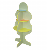 Описание: Цвет салатовый, зеленый. Стойка в форме дерева, с фасадной части для устойчивости дополнительная вертикальная планка повторяющая форму основы (деревце), которая делит основу на 2 половины. Верхняя полка - сплошная, нижние четыре полочки секторами по две с каждой стороны от вертикальной планки.
