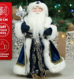 ВИТ Дед Мороз в богатой синей шубе с посохом / н=30см, текстиль, Т-6344