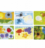 NAT 337134*Тактильная игра - Животные / лото-мемори, 6карт 28*21см, 18фиш д=6,5см, коробка, 3+