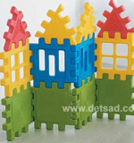 Детали конструктора яркие, крупныес различным рифлением 40*40*5см. Выполнены из яркоокрашенной, высококачественной, прочной пластмассы.