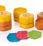 В комплект входят 3 разноцветных мешочка в форме сот, которые можно наполнить разнообразными тактильными материалами и хранить внутри сот-коробочек.