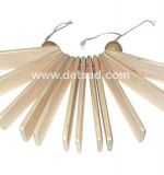 Веерная пластинчатая трещотка выполнена из неокрашенной обработанной древесины. Деревянные детали этого музыкального инструмента соединены друг с другом с помощью прочной лески с бусинами, которая скрепляет верхнюю часть пластин.