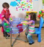 Центр воды и песка состоящий из большого круглого поддона со сливным отверстием и металлической подставки.
