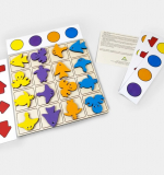 Попросите ребенка разместить фигурки на игровом поле в соответствии с цветом и направлением во всех строках и столбиках.
