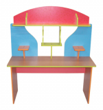 Описание: Основной цвет бук или кремовый. Фасады цветные по желанию заказчика. Стол, надстройка фигурной формы цветная с дополнительными полочками.
