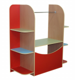 Описание: Основной цвет бук или кремовый. Фасады цветные по желанию заказчика. Две консоли с тремя полочками соединены между собой штангой для шторок, низ - закрыт панелью с фасадной стороны, изнутри - полочка для театральных принадлежностей.
