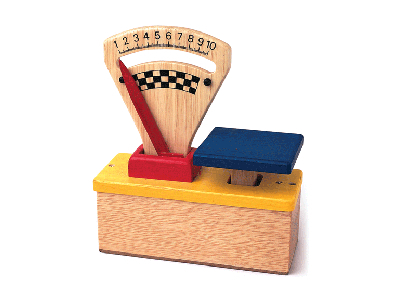 Весы состоят из прямоугольного основания высотой 5см с вертикально закрепленной на нем измерительной шкалой с подвижной стрелкой и с нанесенными по дуге метками и цифрами и плоской чаши на подвижном основании.