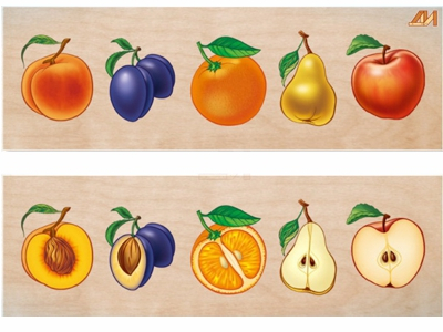 ДИ Пазлы-вкладыши - Фрукты / с подслоем, 5вставок, 21*8см, дерево, ДИ 109