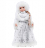 Внучка деда мороза в белой шубе с поясом с мелодией, Сувенир, 40 см.