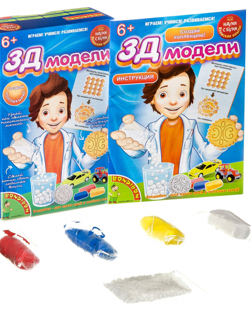 ГРАТ ВВ1839 Опыты Bondibon-3Д модели / 3-хмерные копии предметов, 4цв глины, 6+