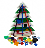 Состав: Инструкция; 2 шнурка; пакет с липучками (63 геометрических элементов 2 размеров, 9-ти цветов); елочка из 7 веточек - 18см.; 3 липкие веревочки; ось и подставка из фанеры.