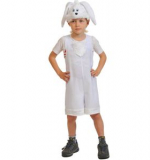 Костюм состоит из плюшевой шапки-маски с длинными ушками и белого полукомбинезона с маленьким хвостиком на бретелях.