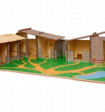 Он создан специально для 8 семей животных. Двор включает в себя конюшню, коровник, загоны для овец и коз, свинарник, птичник.