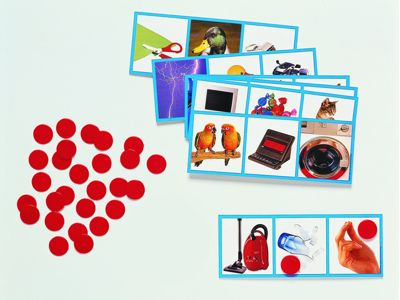 После того, как все звуки будут детьми определены, можно приступать к игре в лото, раздав детям игровые карты и фишки. В этом случае, услышав и определив звук, игрок называет его источник и кладет фишку на соответствующее изображение на своей карте. Победителем будет тот, кто первым сможет закрыть фишками все изображения на своей карте.